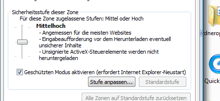 Mit der Mittelhochen Einstellungsstufe sind die Cookies aktiviert. Über die Schaltfläsche Stufe anpassen...