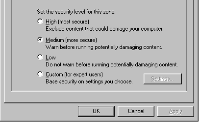 Wählen sie die Mittlere Einstellungsstufe aus. Mit dieser Einstellungen sind Cookies aktiviert.