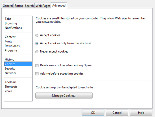 Cookies aktivieren in Opera 10.x: