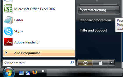 Die Cookie Einstellungen sind in der Systemsteuerung untergebracht. Um zu der Systemsteuerung zu gelangen klicken Sie auf Start > Systemsteuerung.