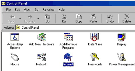 - Doppelklick auf das Internet Icon öffnet die benötigten Einstellungen.